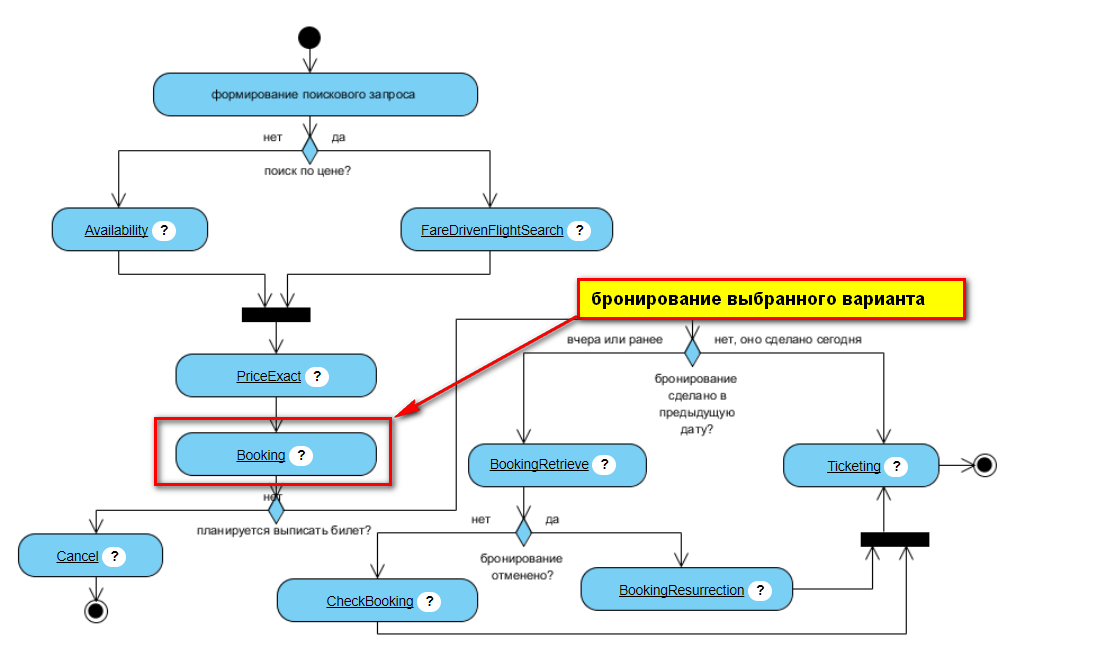 Например, на этапе поиска по цене Itinerary состоит из Leg и Mask, то есть данные по перелетам маршрута и расчет стоимости перелета по маршруту. На этапе создания бронирования туда попадает Passenger, то есть данные по пассажирам брони, номер брони (Locator) и блок SSR.