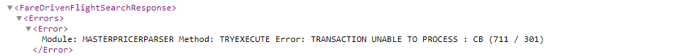 Module: MASTERPRICERPARSER Method: TRYEXECUTE Error: TRANSACTION UNABLE TO PROCESS : CB (711 / 301)